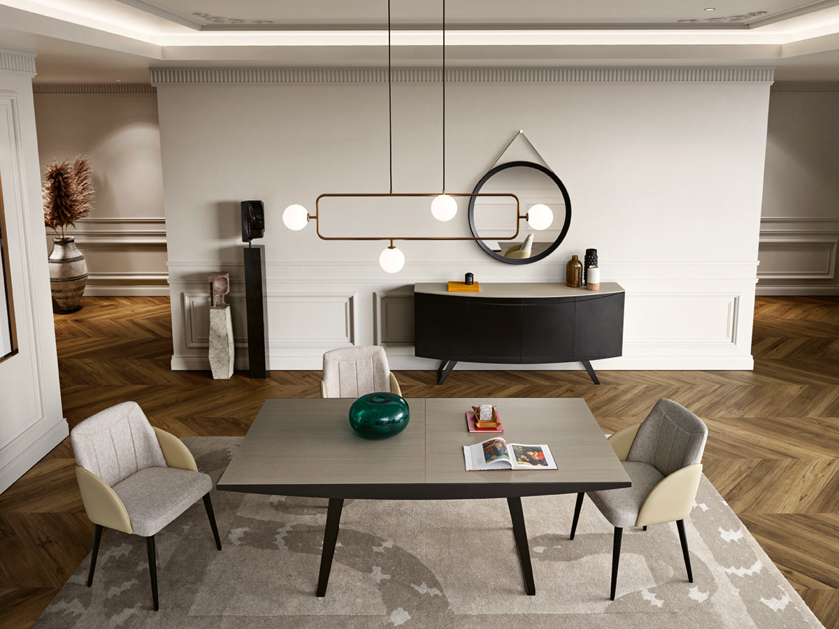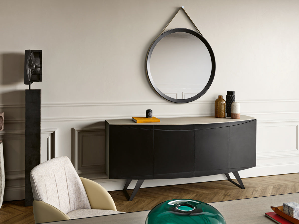 Se aprecia soluções práticas e arrumação, esta peça é definitivamente obrigatória. O aparador é em Carvalho Prata com o interior e as 4 portas em Lacado e pés em ferro.