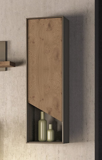 Armário suspenso que complementa o seu móvel de TV. Com 1 porta e pormenor em vidro ,que permite a exposição dos seus elementos de decoração preferidos.