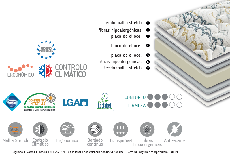 Material que oferece conforto, elasticidade e resistência inigualáveis.Resultado de um proces-so ecológico livre de CFC, com estrutura celular aberta permitindo a circulação de ar livremente fazendo com que este núcleo permitauma favorável oxigena-ção e temperatura.