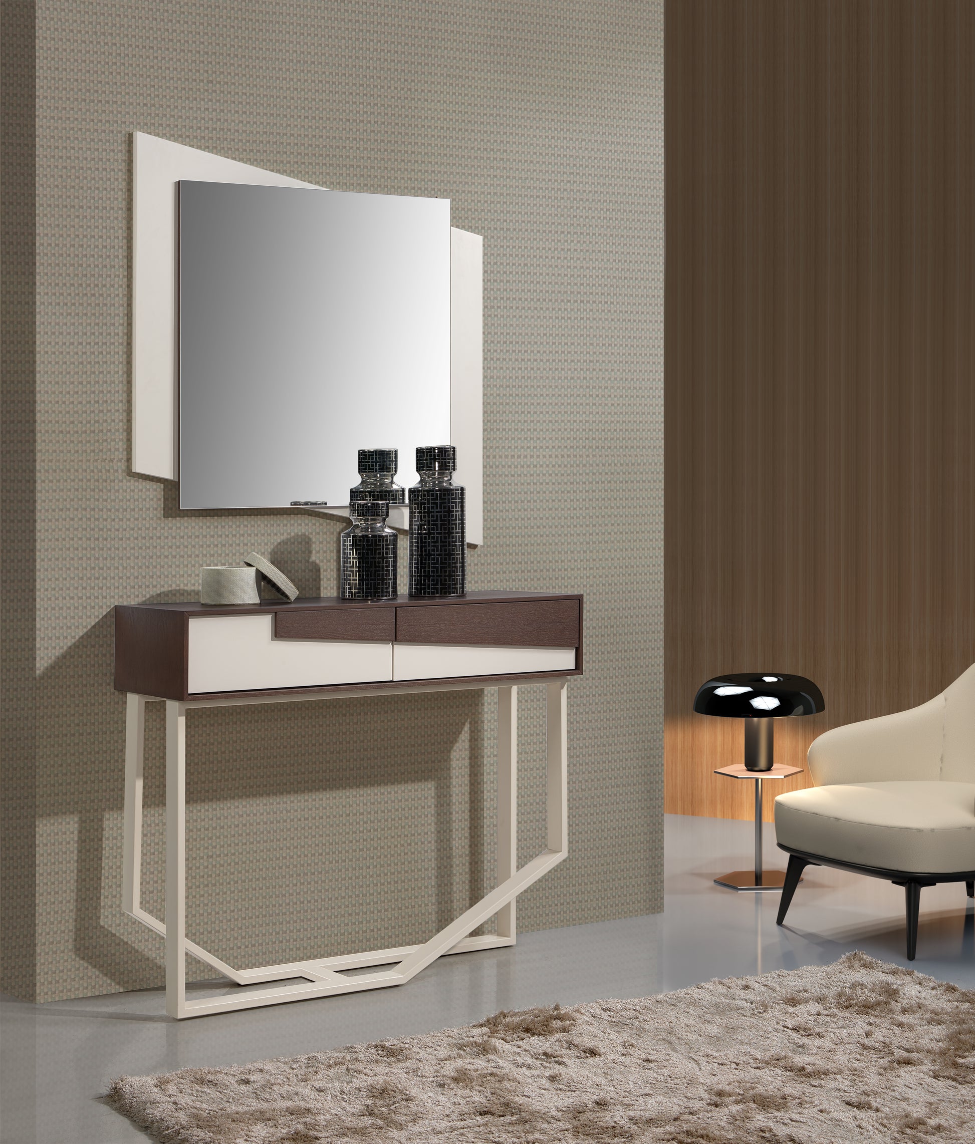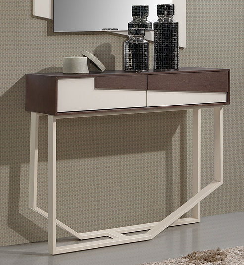 Consola com 2 gavetas e pé de ferro. Uma excelente opção para a sua entrada.