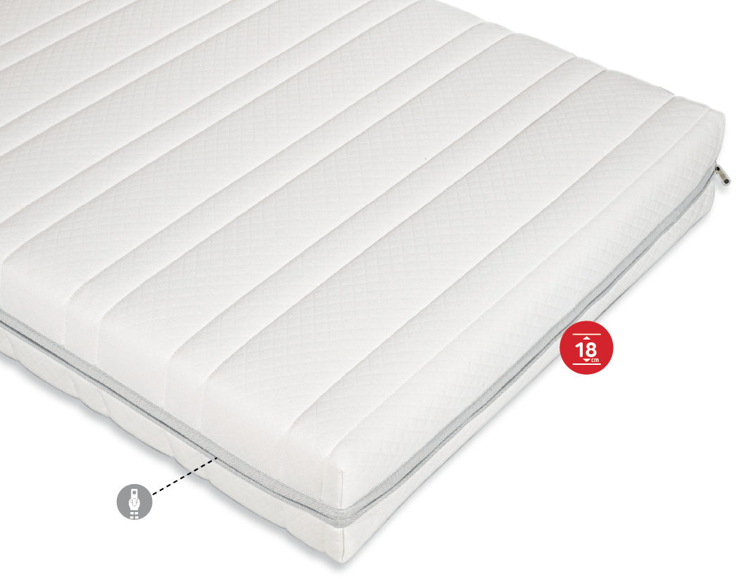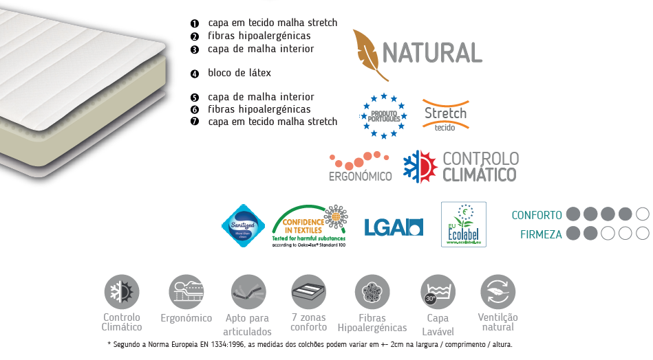 O Látex é altamente recomendado pelas suas qualidades intrínsecas de elasticidade, suporte e durabilidade.A sua elasticidade garante um perfeito ajuste ergonómico e a sua origem vegetal proporciona um descan-so natural e saudável. Matéria prima com estrutura de células abertas permitindo uma ótima ventilação.