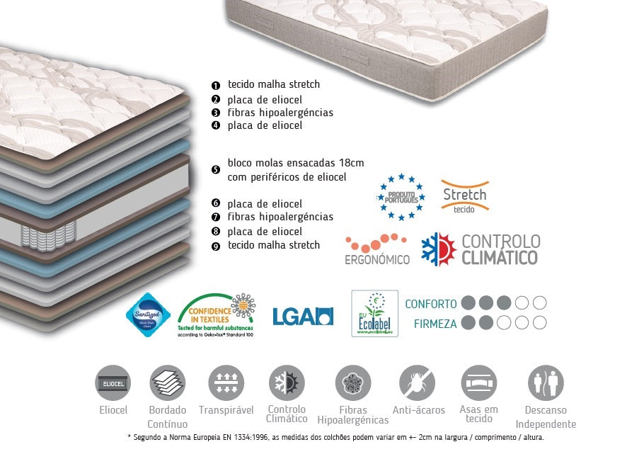 Formado por molas independentes em forma de barril, revestidas por tecido TNT.