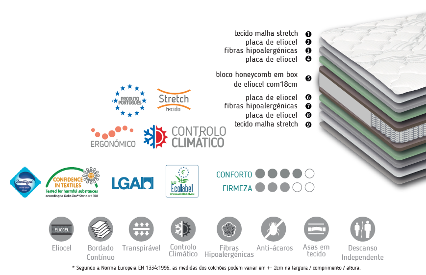 Sistema inovador com mais 20% de molas do que o tradicional, permitindo uma cobertura da superfície de descanso completa. Este tipo de organização das molas torna o apoio do colchão mais responsivo para o seu corpo.