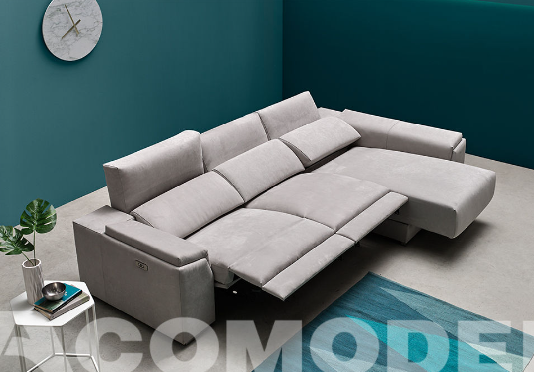 O sofá Telma está equipado com cabeça elevável para pessoas altas e rins fofos para maior conforto. Possui braços com peito e pufe para aquelas visitas inesperadas. Telma oferece comando de botões do mais recente design que inclui um conector USB. Este sofá está disponível em sistema elétrico relax, e sua chaiselongue é elétrica deslizante com baú.